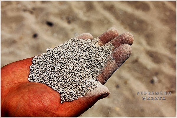 Haaa. Pasir dia macam ni. Berbijik bijik. Yang satu jenis lagi tu macam pasir biasa. Tapi yang jenis berbutir butir ni memang letih nak berjalan atas dia sebab lagi gebus gebus tanahnya