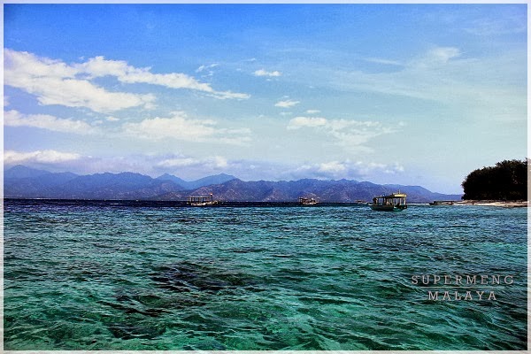 Dah pusing ke belah selatan Gili Air ni nampak Pulau Lombok balik semula...